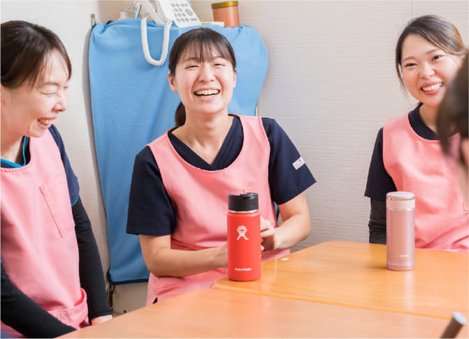 初めて働く環境で、「一体どういう仕事内容なのだろう?」「どんな人たちが働いているのだろう?」と、不安な気持ちが強く、長く働けるか正直自信がありませんでしたが、先生をはじめ、スタッフの皆さんにフォローして頂きながら、徐々に慣れ、今では自分にできる仕事も増えてきました。頼りになる先輩方がお待ちしていますので、是非、一緒に働けるのを楽しみにしています!